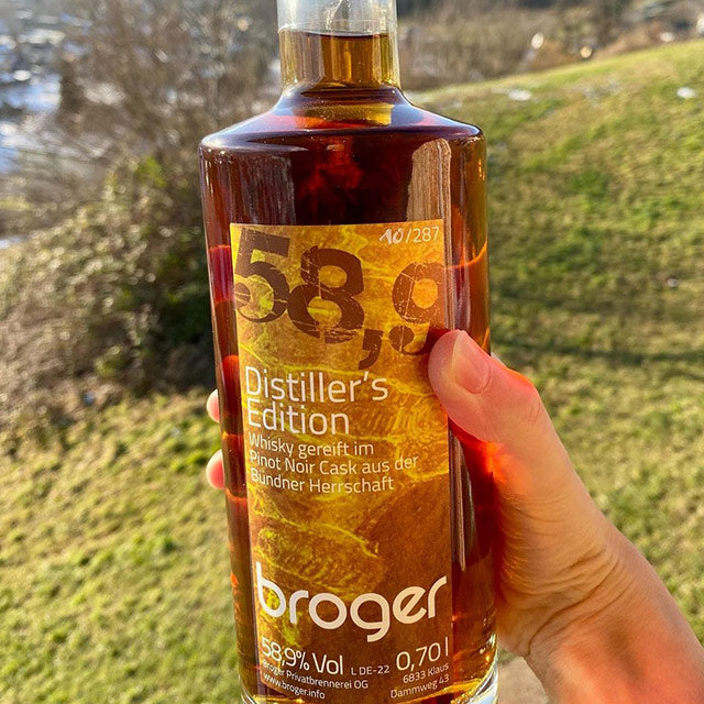 Viele helfende Hände und rauchende Köpfe. Die international ausgezeichneten Destillate entstehen durch die Mitglieder der zwei Familien Broger. In der Privatdestillerie in Klaus in Vorarlberg wird vor Ort eingemaischt, destilliert, gelagert und verkauft.